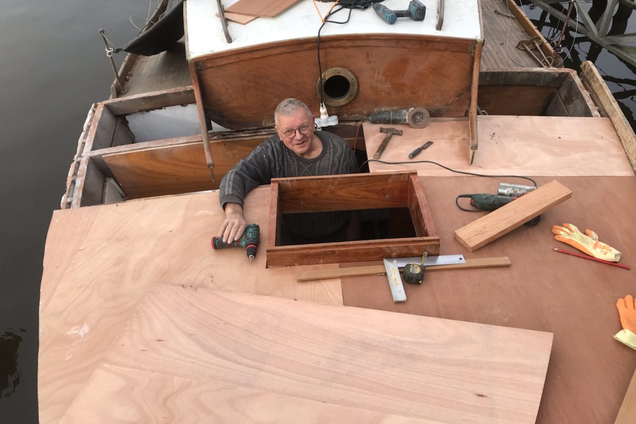 Compte tenu de la courbure du pont nous avons réalisé le support avec deux couches de contreplaqué marine collé à l'époxy .