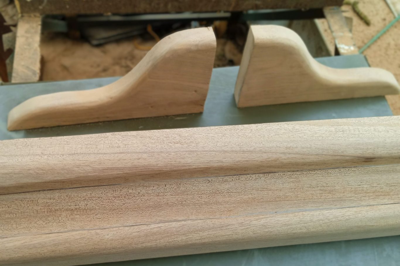 Les différentes pièce de menuiserie ont été refaite à l'identique en bois exotique (Sipo, Niangon)